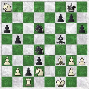 Twee zetten eerder had ik na 23…Ld5 volgens mij geen tegenspel meer gehad. Dan was de pionnenketen ‘c2-d3’ vlot te verschalken geweest. Nu is deze zet volgens Rybka er een die het witte voordeel weggeeft. Waarmee ik het doel van mijn actieve tegenspel bereikt heb: het negatieve effect van een volle toren achter is geneutraliseerd.
