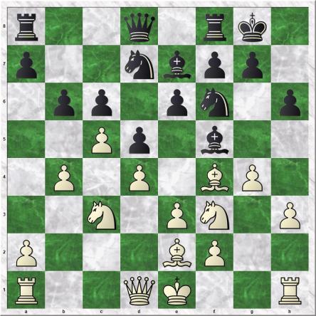 11…Pe4 12.Pxd5 exd5 13.gxf5 b5 14.Dc2 Lh4 15.Th2 Te8