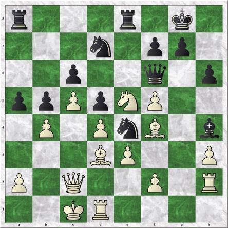 Er volgt een partij, waarin beiden vol gaan voor de mogelijkheden zonder dat er echt grote fouten gemaakt worden. De computeranalyse achteraf laat zien dat het gecompliceerd is geweest.
