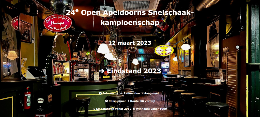 Waar de 24e editie van het Open Apeldoorns Snelschaakkampioenschap op het programma staat met 35 deelnemers. Speeltempo: 5 minuten per persoon per partij.