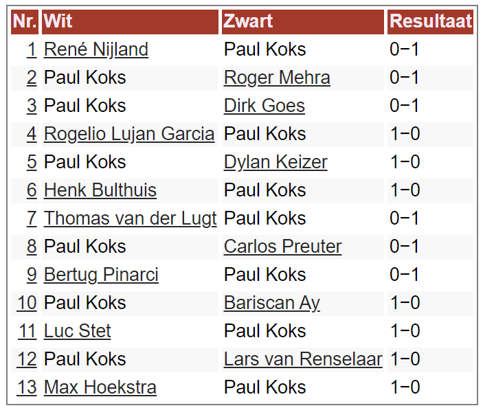 In zesde ronde mag ik tegen Henk Bulthuis, die geen familie is van Jelle Bulthuis. Het wordt mijn vierde verliespartij van deze dag.